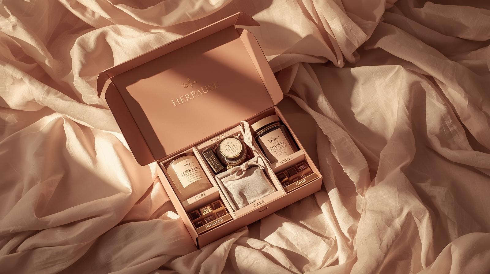 A single HerPause box, thoughtfully prepared for this month’s rhythm. Perfect as a gift, a first experience, or a moment of spontaneous care.